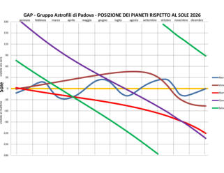 Posizione dei pianeti rispetto al Sole 2026Creato dal socio Cosimo Millevoi.